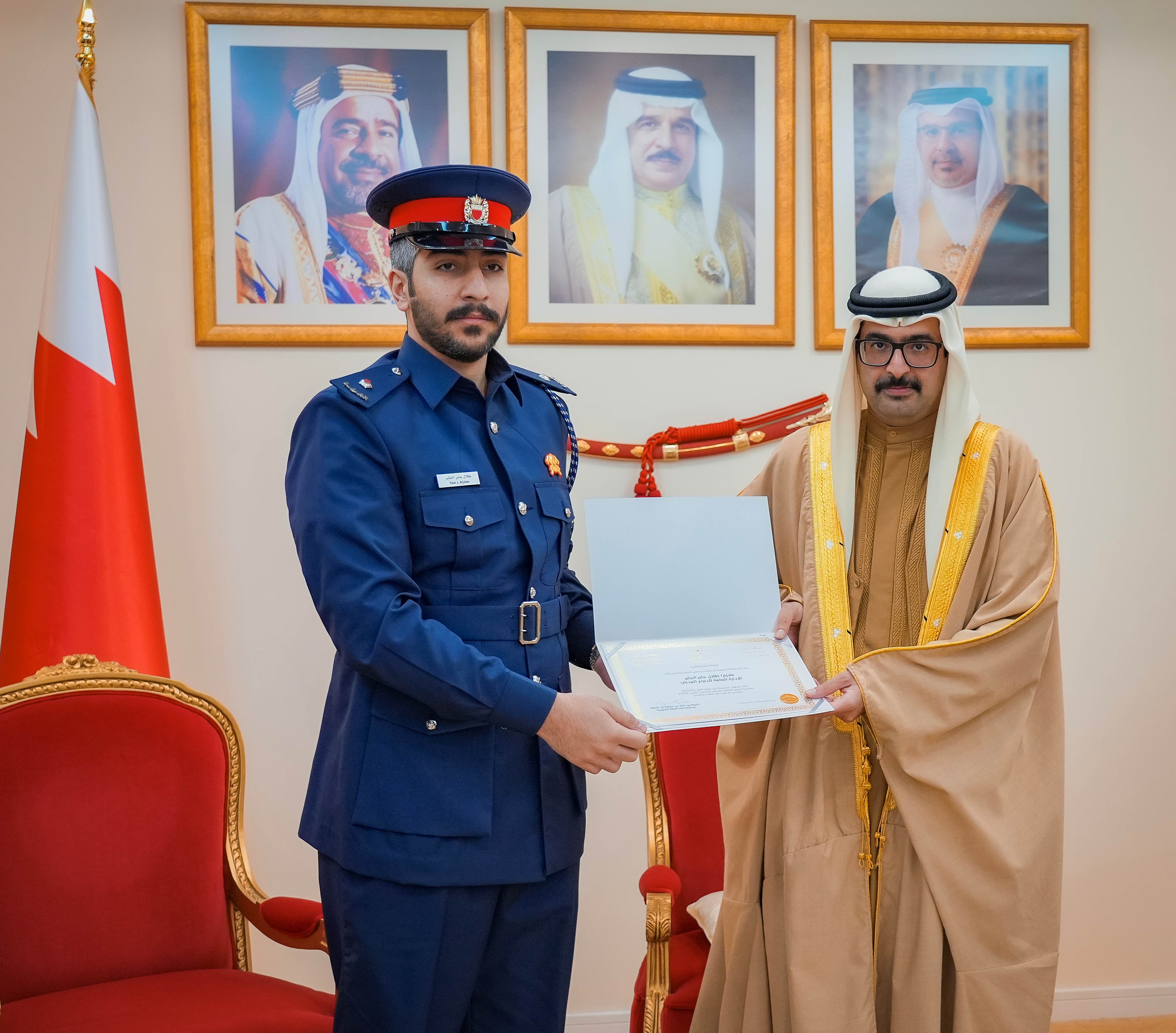 وتفضل سمو محافظ المحافظة الجنوبية، بتكريم سعادة العميد ركن طيار علي محمد الكبيسي مدير عام الإدارة العامة للدفاع المدني، ومنتسبي الإدارة من ضباط وأفراد، معرباً سموه عن شكره وتقديره للجهود المبذولة من قبل الإدارة العامة للدفاع المدني في الجاهزية وسرعة الاستجابة، ودورهم الفاعل في التعاون المشترك مع مختلف المناسبات التي تقام في مناطق المحافظة ومن أبرزها تنظيم سلسلة من الحملات التوعوية والمبادرات الهادفة.