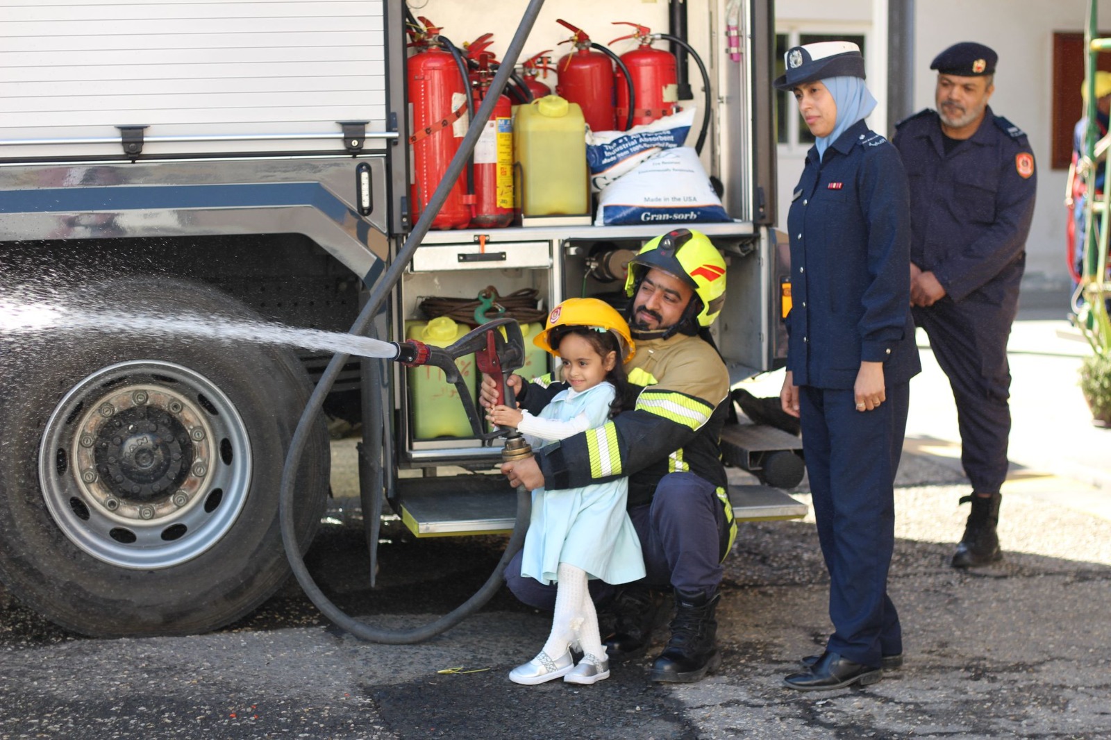 وخلال الزيارة، أتيحت للأطفال فرصة استخدام خراطيم المياه لإطفاء الحرائق، تحت إشراف رجال الدفاع المدني، كما قدموا لهم شرحًا مبسطًا حول كيفية استخدام المعدات، وأهمية سرعة الاستجابة عند حدوث أي طارئ. وتعرف الأطفال على آليات الدفاع المدني، والاطلاع على سيارات الإطفاء والمعدات الحديثة المستخدمة في عمليات الإنقاذ.