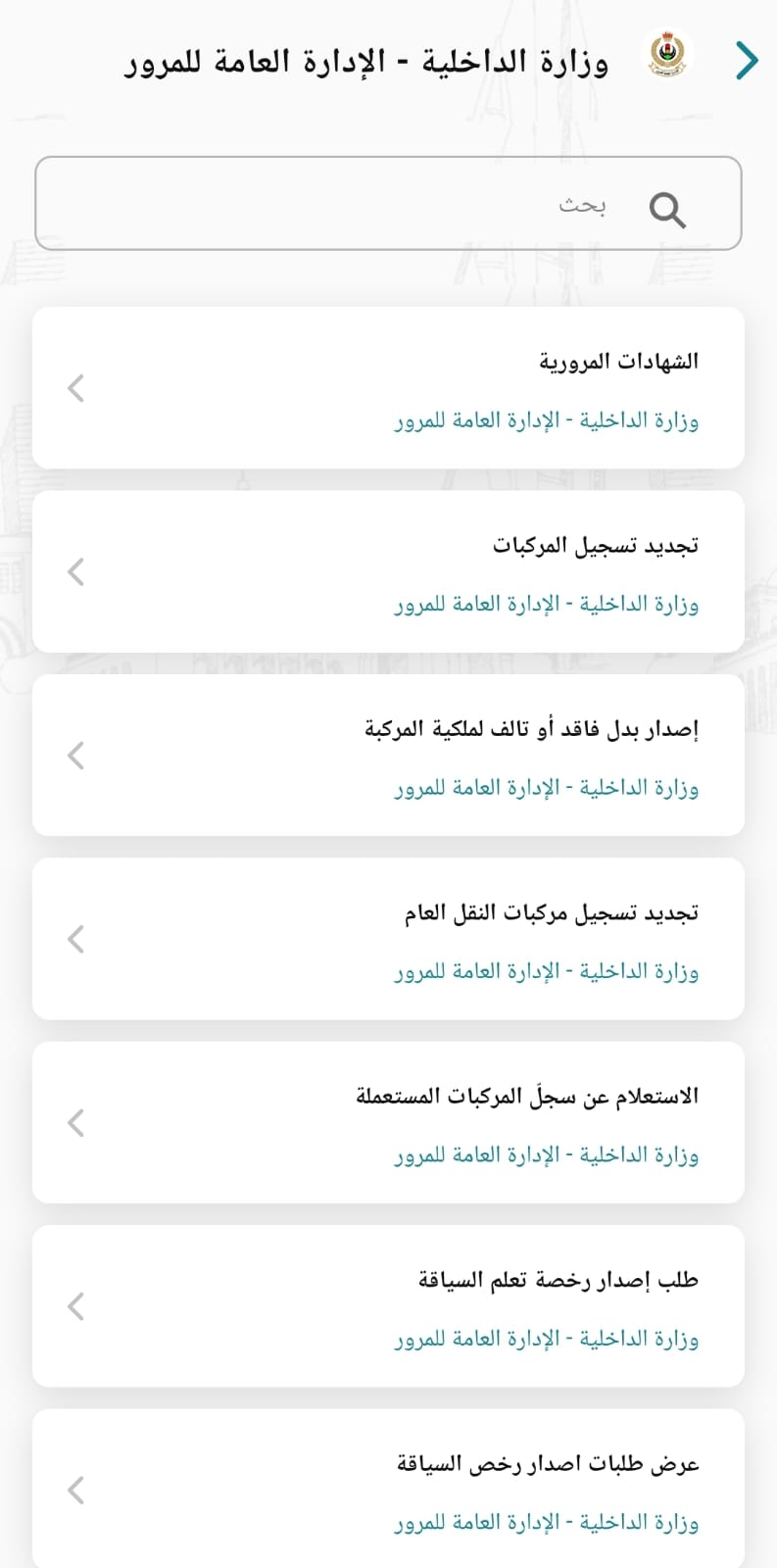 كما يتيح التطبيق عددا من الخدمات المقدمة من شئون الجنسية والجوازات والإقامة وتشمل إمكانية طلب إصدار وتجديد جواز السفر والاستعلام عنه، طلب إصدار أو تجديد الإقامة، وطلب إصدار تذكرة المرور، وغيرها من الخدمات التي توفر السرعة والسهولة في إنجاز المعاملات ، بالإضافة إلى خدمات الإدارة العامة للمرور والتي تهدف إلى تبسيط الإجراءات المرورية، حيث يمكن للمستخدمين تجديد رخص القيادة ، دفع المخالفات المرورية بشكل فوري، تجديد تسجيل المركبات دون الحاجة إلى زيارة مراكز الخدمة.