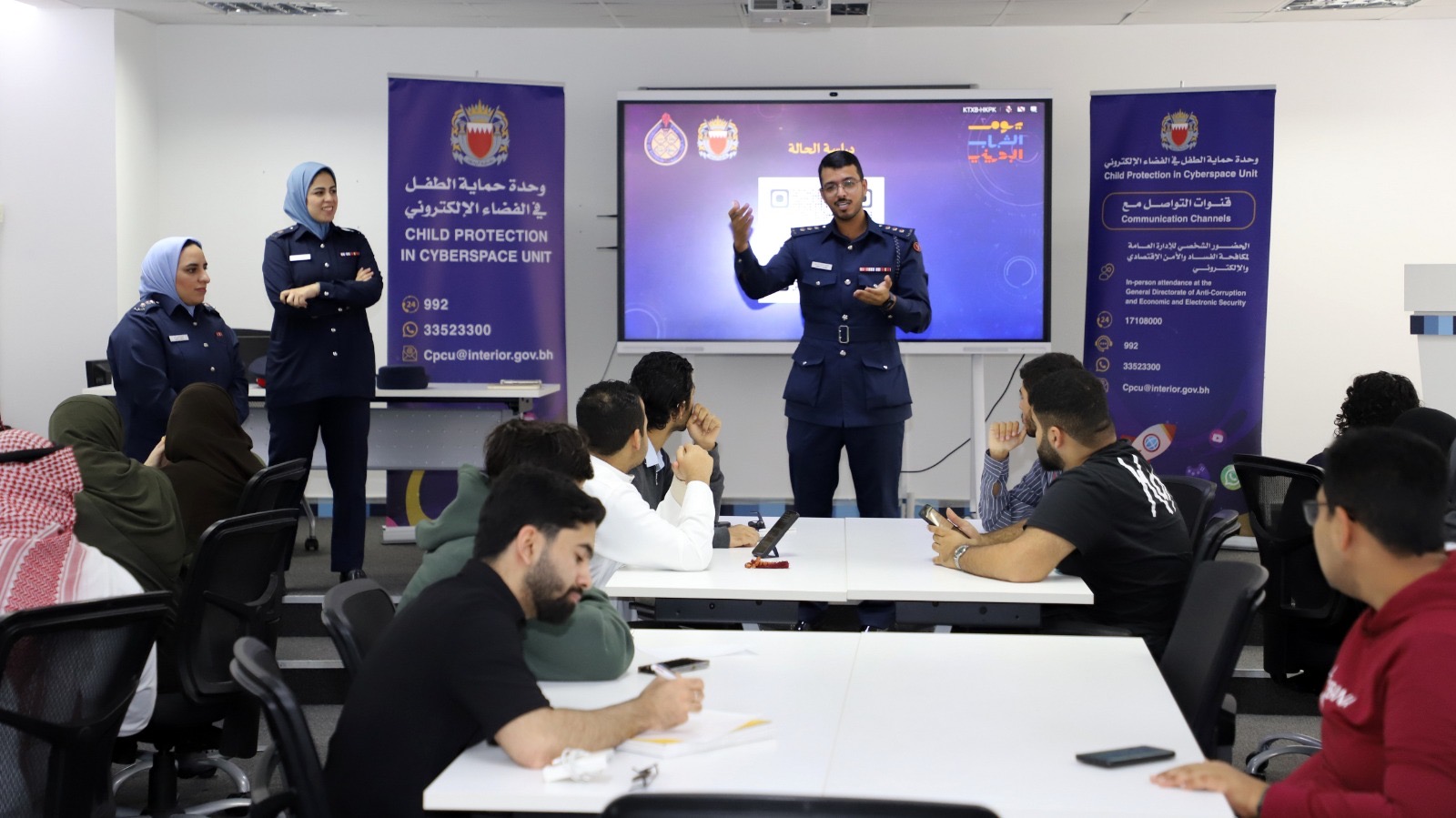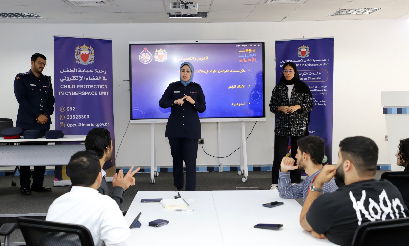 تزامنا مع احتفالات المملكة بيوم الشباب البحريني ، أقامت وحدة حماية الطفل في الفضاء الإلكتروني بالإدارة العامة لمكافحة الفساد والأمن الاقتصادي والإلكتروني بالتعاون مع جامعة البحرين الملتقى الطلابي "الشباب البحريني في العالم الرقمي الفرص والتحديات"