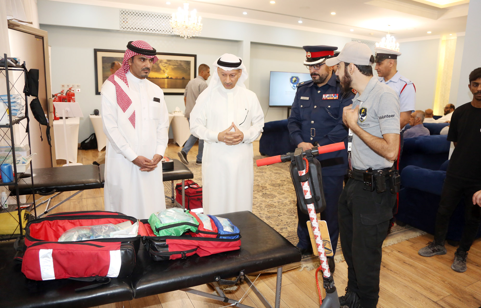 وشهد البرنامج استعراضًا عمليًا لمختلف جوانب العملية الإسعافية، بدءًا من إجراءات السلامة العامة التي شملت عرضًا حيًا لاستخدام طفايات الحريق وكواشف الدخان والحرارة، وآليات التواصل لتقديم البلاغات ونظام إدارة العملية الاسعافية، علاوة على عرض معدات التدريب المستخدمة في تأهيل المتطوعين على الإسعافات الأولية، إضافة إلى شرح مفصل حول خطوات الإسعاف الأولي.
