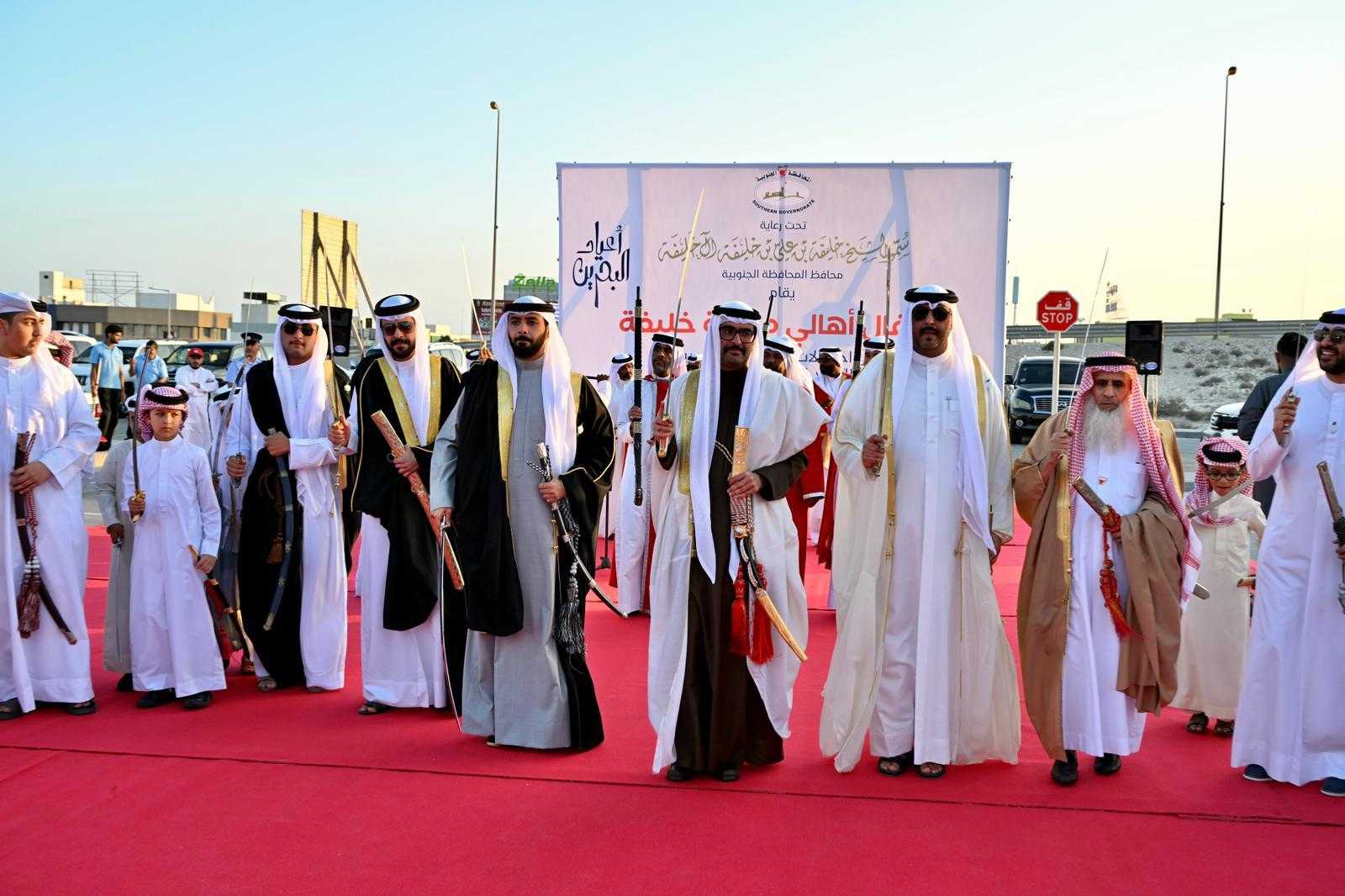 حضر سمو الشيخ خليفة بن علي آل خليفة محافظ المحافظة الجنوبية، عرضة واحتفال أهالي مدينة خليفة، بمناسبة احتفال مملكة البحرين بأعيادها الوطنية وعيد جلوس حضرة صاحب الجلالة الملك المعظم حفظه الله ورعاه، وما يصاحبها من مناسبات وطنية، بحضور سعادة العميد حمد محمد الخياط نائب المحافظ، وعدد من الوجهاء والأعيان وأهالي المحافظة، وذلك ضمن سلسلة الفعاليات والاحتفالات الوطنية التي تقيمها المحافظة الجنوبية.