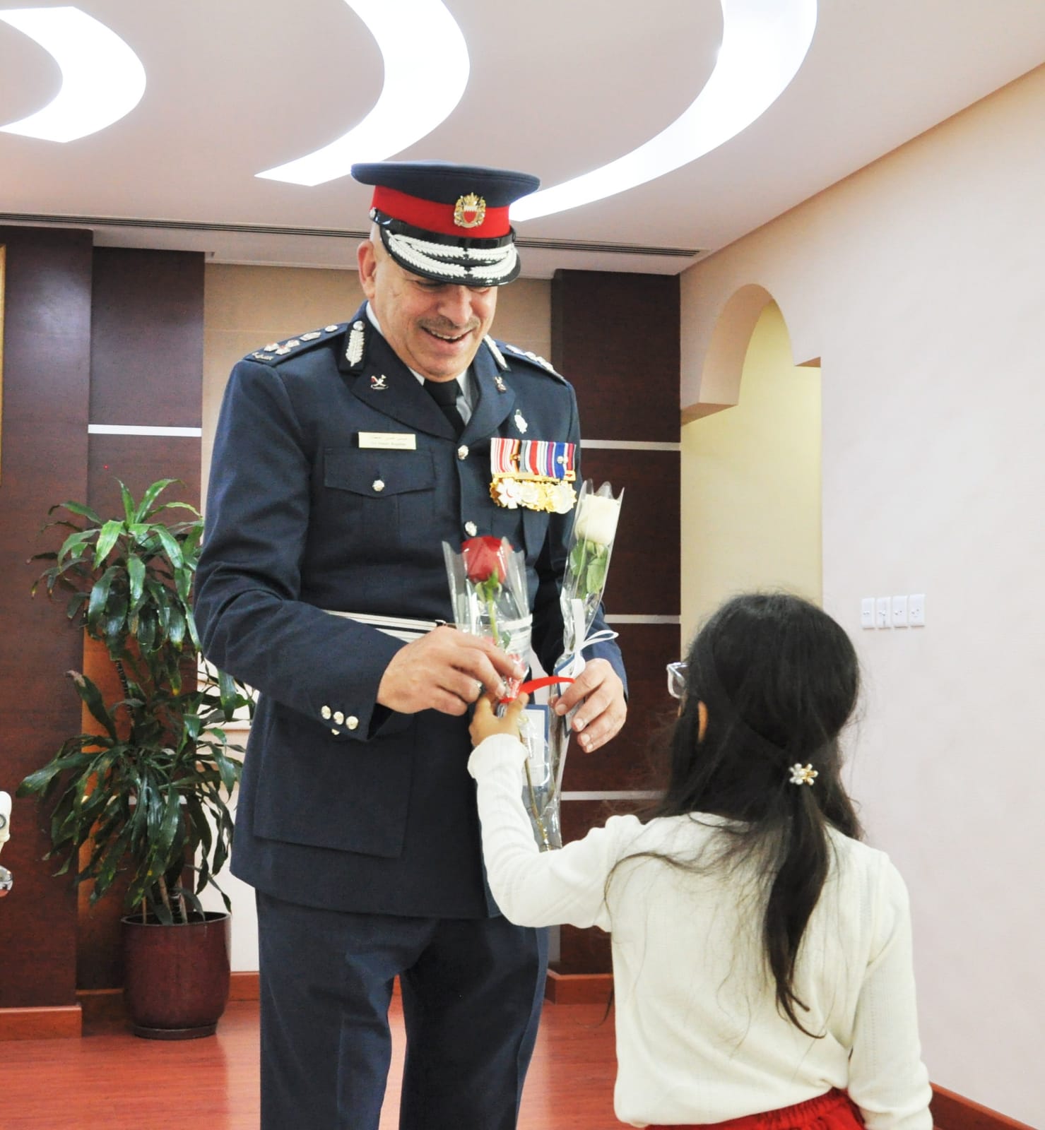 وخلال الزيارة، قام الأطفال بتقديم الورود إلى منتسبي المديرية؛ تعبيرًا عن تقديرهم للدور الأمني والإنساني الذي تضطلع به شرطة البحرين، وما تبذله من جهود متواصلة في خدمة المجتمع وحفظ الأمن والاستقرار.