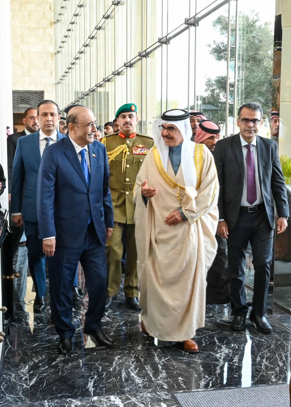 في اطار زيارته إلى مملكة البحرين ، ولقائه مع حضرة صاحب الجلالة الملك حمد بن عيسى آل خليفة ، ملك البلاد المعظم ، حفظه الله ورعاه ، استقبل فخامة الرئيس آصف علي زرداري رئيس جمهورية باكستان الشقيقة ، بمقر اقامته ، الفريق أول معالي الشيخ راشد بن عبد الله آل خليفة وزير الداخلية.