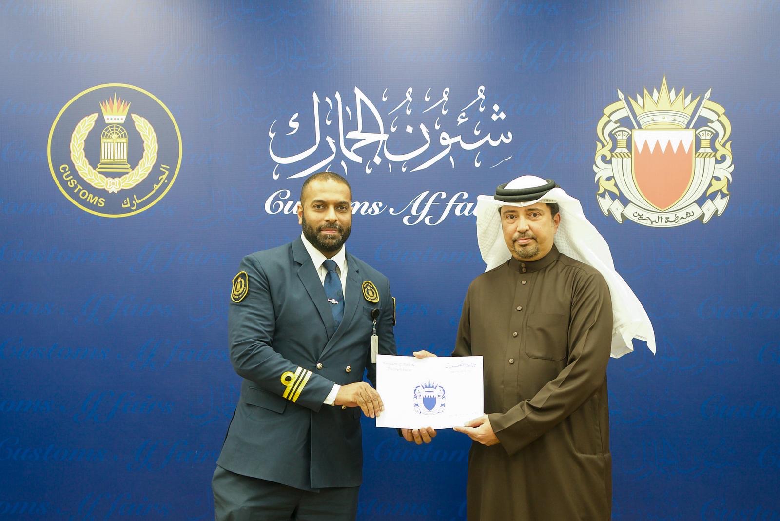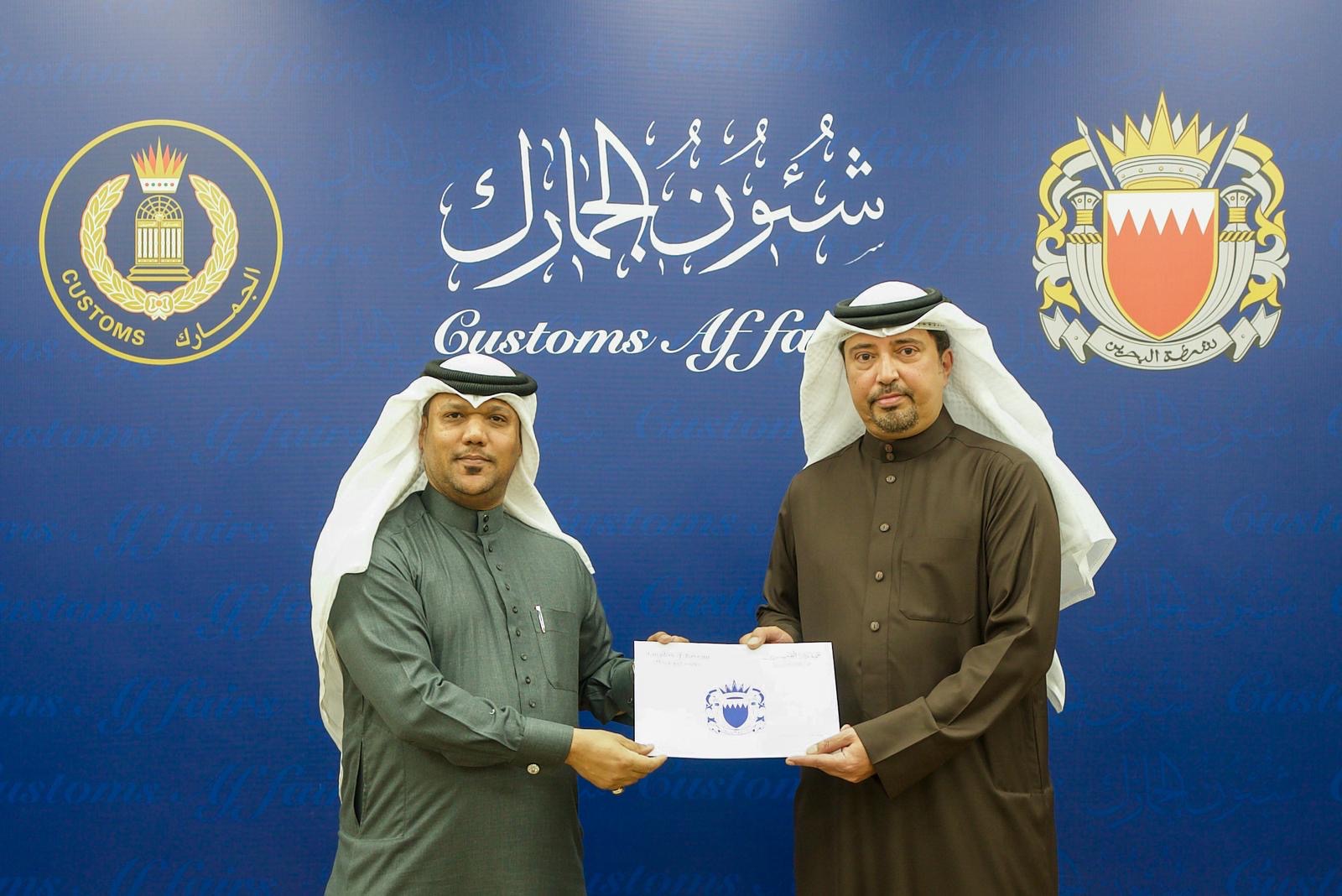 حضر معالي الشيخ أحمد بن حمد آل خليفة رئيس الجمارك ، الحفل الذي أقامته شئون الجمارك لتكريم الموظفين المتميزين والموظفين المشاركين في المسابقة الجمركية "فكرة" في نسختها الثانية ، وذلك ضمن الفعاليات المصاحبة ليوم الجمارك العالمي لهذا العام ، تحت شعار "الجمارك تحمي المجتمع من خلال الالتزام والمسئولية".