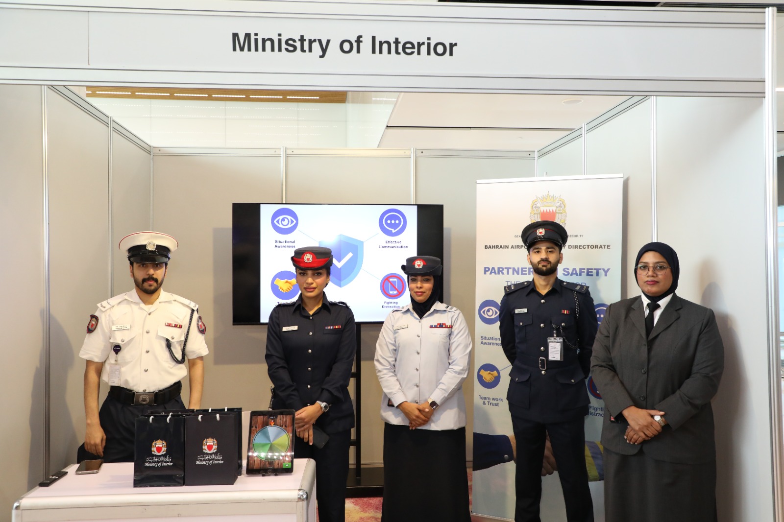 أعلنت وزارة الداخلية أن إدارة أمن مطار البحرين بالإدارة العامة لأمن المنافذ وبالتعاون مع شركة مطار البحرين ، شاركت في فعاليات أسبوع السلامة والذي يأتي هذا العام تحت شعار "العوامل البشرية في سلامة الطيران"، وذلك بهدف تعزيز ثقافة السلامة في قطاع الطيران والحفاظ على بيئة تشغيلية آمنة .