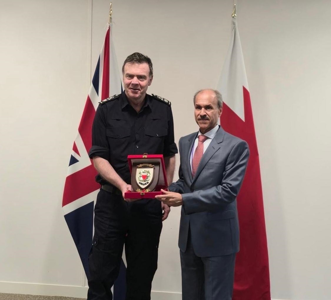 في إطار زيارة وفد وزارة الداخلية إلى المملكة المتحدة ، اجتمع معالي الشيخ هشام بن عبدالرحمن آل خليفة وكيل وزارة الداخلية لشؤون الجنسية والجوازات والإقامة ومعالي الشيخ أحمد بن حمد آل خليفة رئيس الجمارك مع السيد فليب دوغلاس المدير العام لجهاز أمن الحدود.