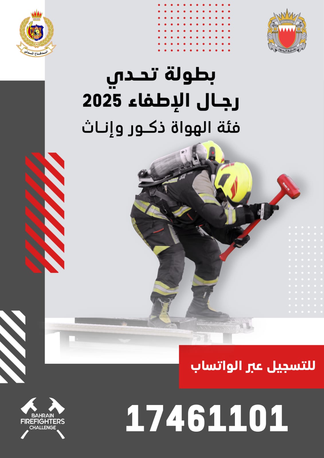 ترسيخا لمبدأ الشراكة المجتمعية ، وفي إطار تعزيز الوعي حول أهمية دور رجال الدفاع المدني في حماية الأرواح والممتلكات ، تنظم الإدارة العامة للدفاع المدني بطولة تحدي رجال الإطفاء التي ستقام بمجمع الأفنيوز اعتباراً من يوم الخميس الموافق 20 فبراير 2025 لغاية يوم الثلاثاء الموافق 25 فبراير2025م.