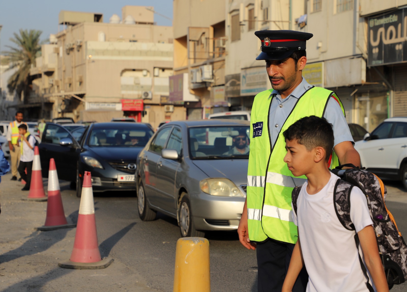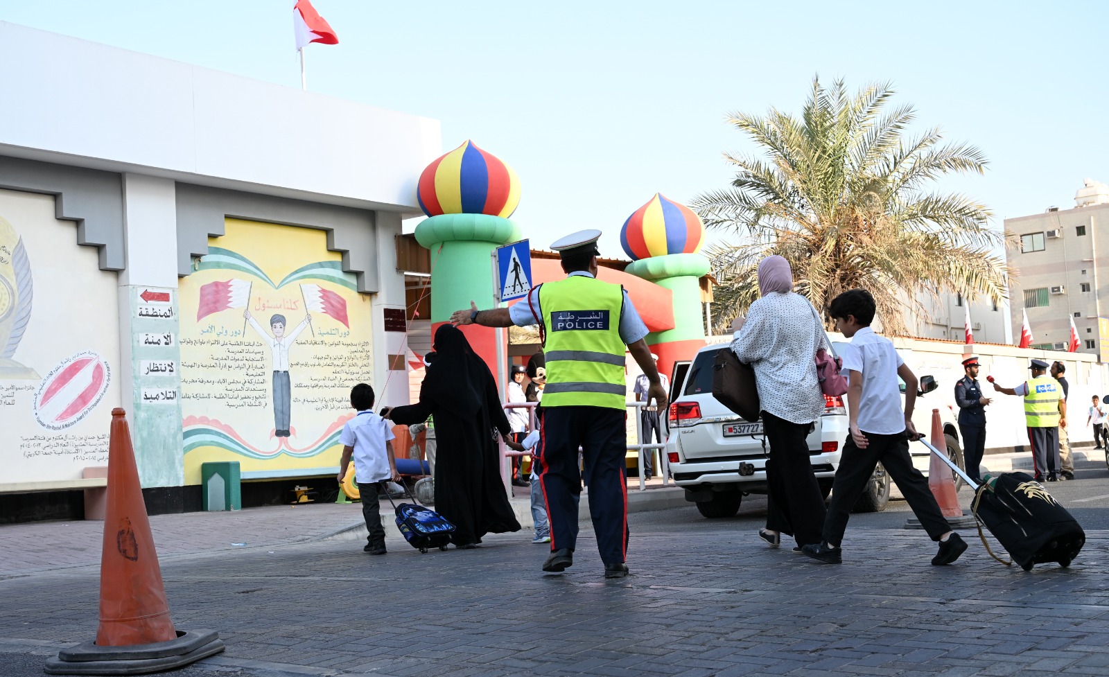 جانب من الجهود التنظيمية التي تقوم بها الإدارات المعنية بوزارة الداخلية لتنظيم حركة السير خلال العودة الى المدارس 2025/9/7