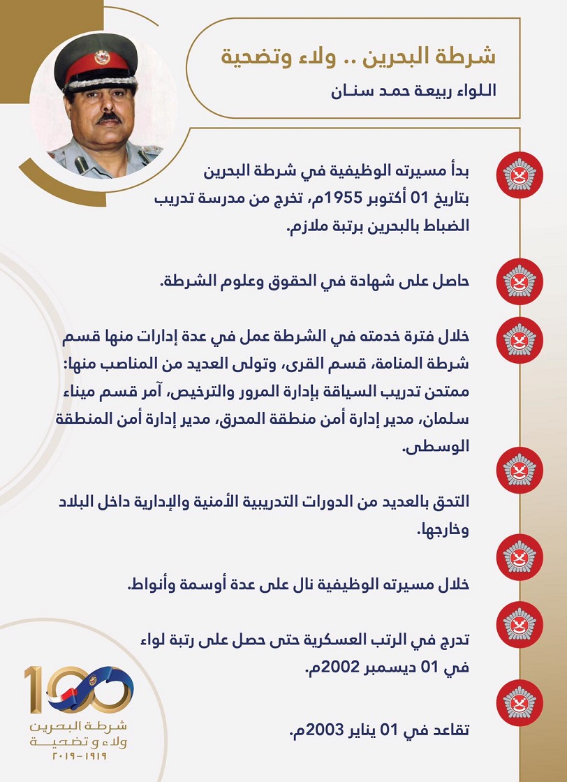 شخصيات من تاريخ البحرين ( اللواء ربيعة حمد سنان) 2020/2/24