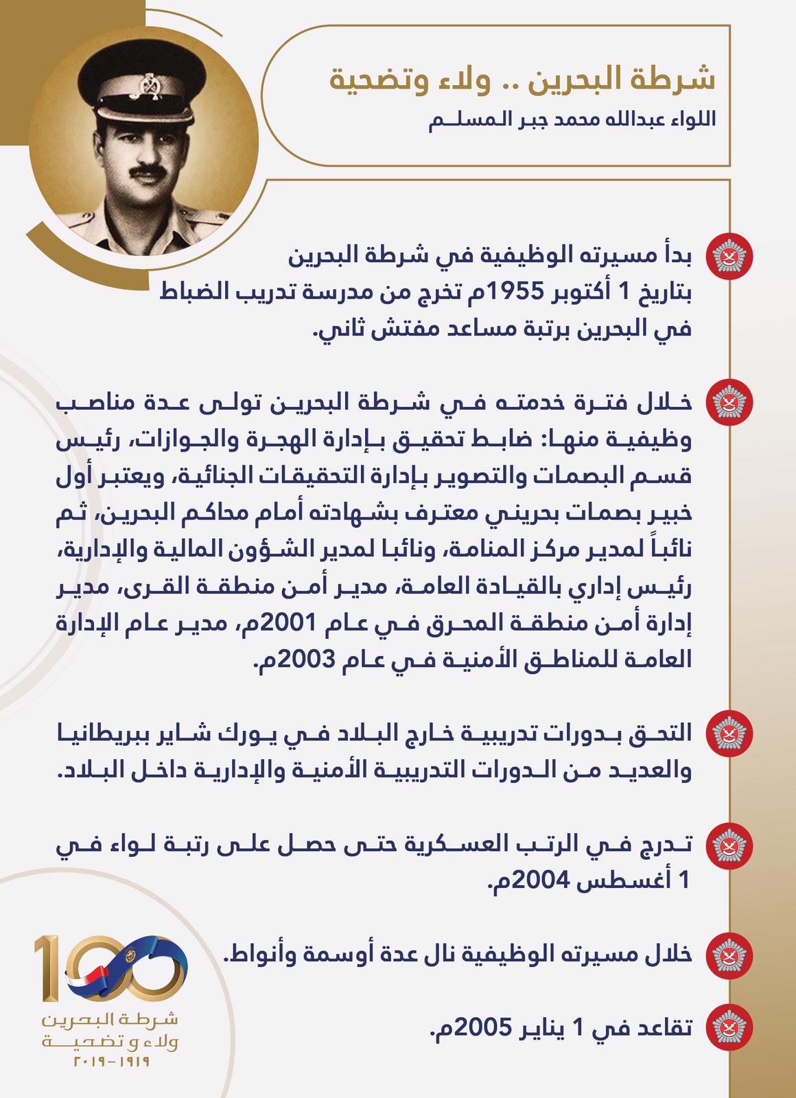 شخصيات من تاريخ البحرين ( اللواء عبدالله محمد جبر المسلم ) 2020/5/4