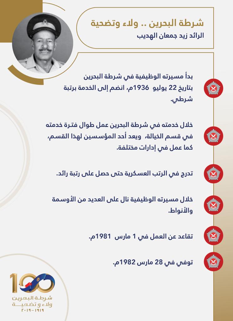 شخصيات من تاريخ شرطة البحرين ( الرائد زيد جمعان الهديب ) 2019/12/29