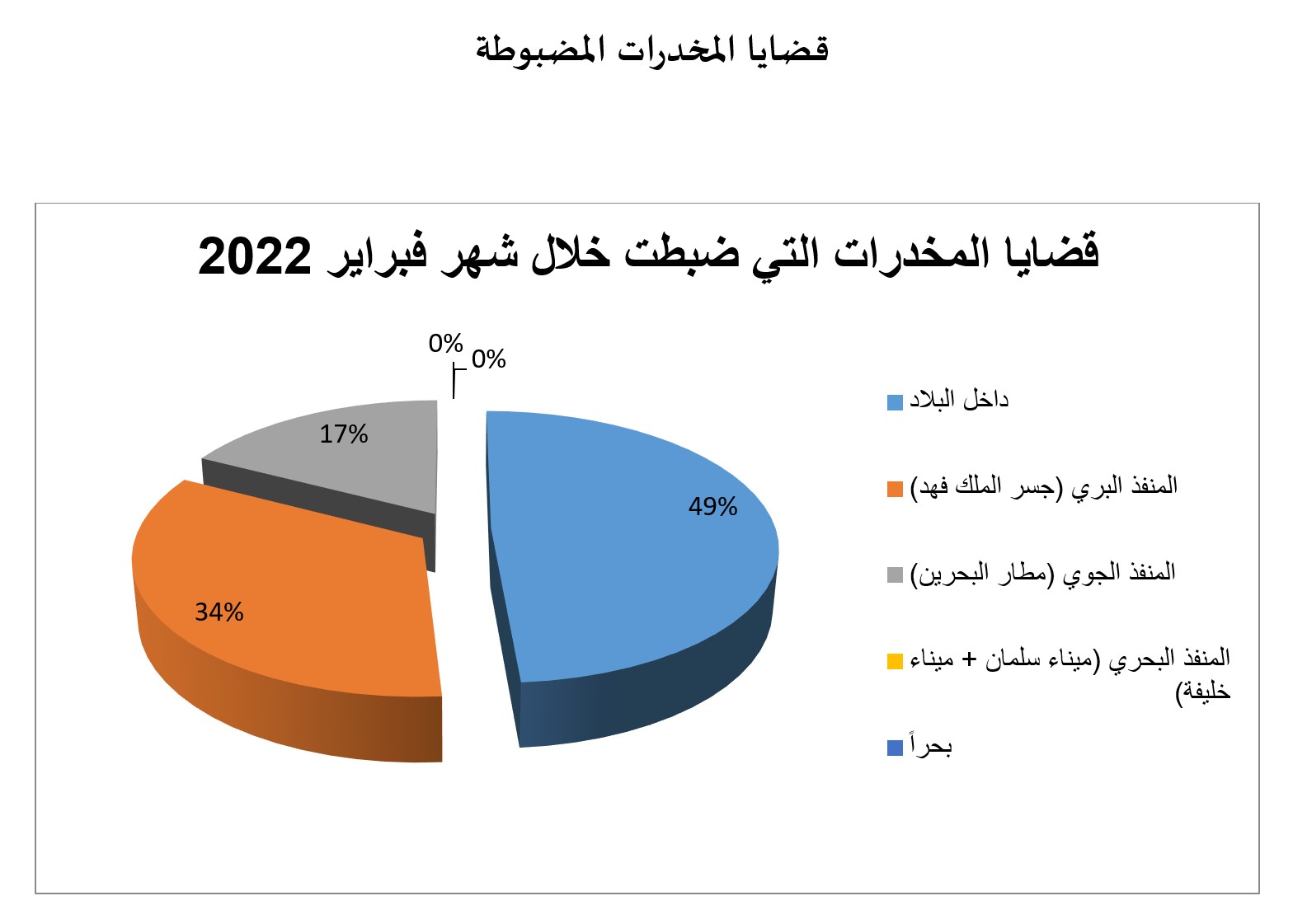 جانب من الإحصائيات المتعلقة بالوضع الأمني في مملكة البحرين خلال شهر فبراير 2022